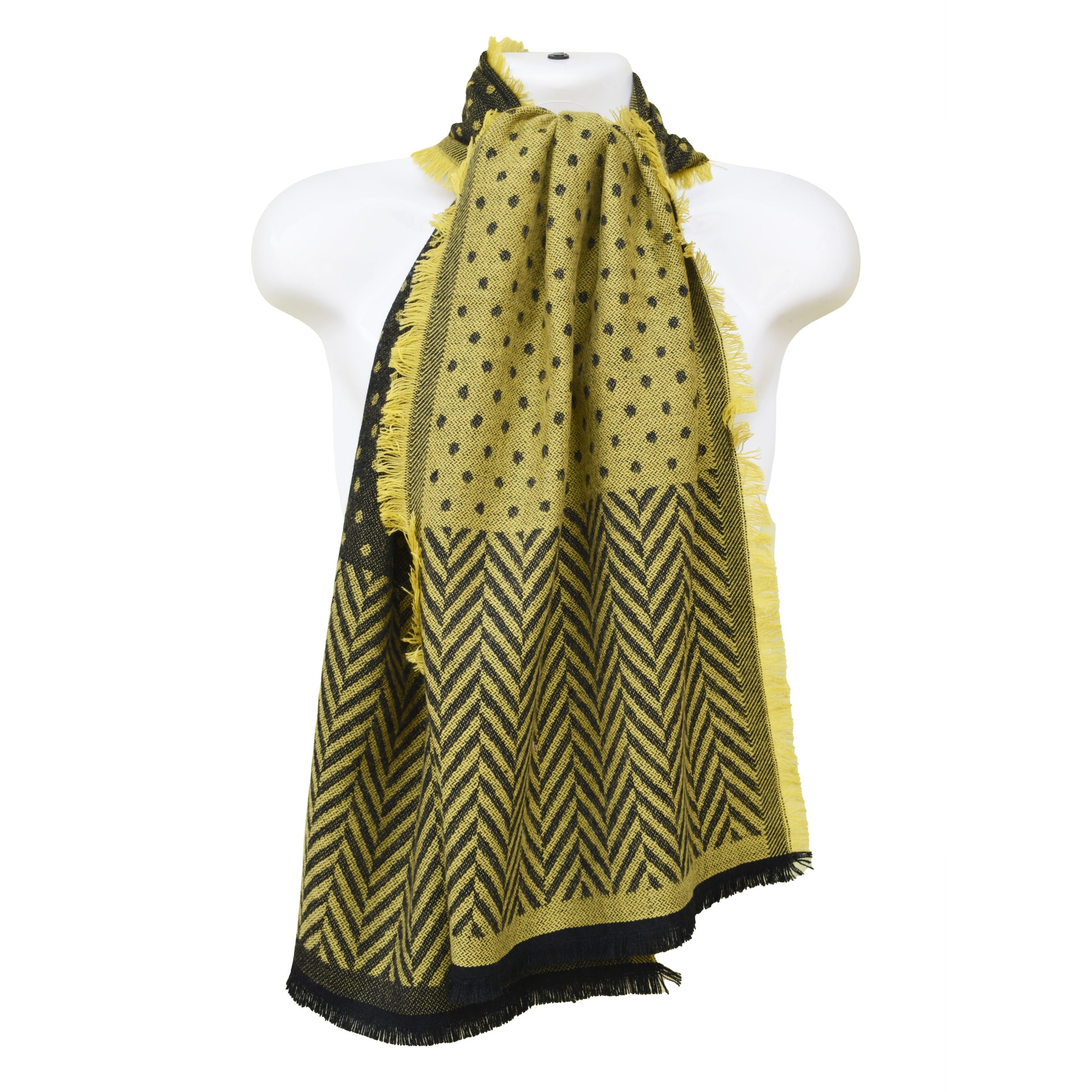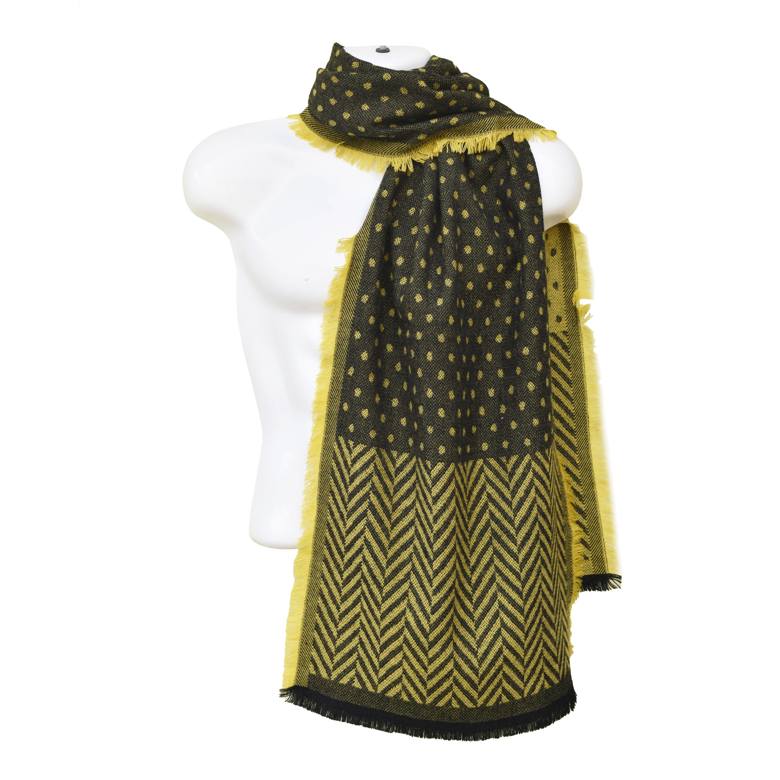 High-Quality Woolen Mens Muffler – Jacquard Style – Black & Yellow