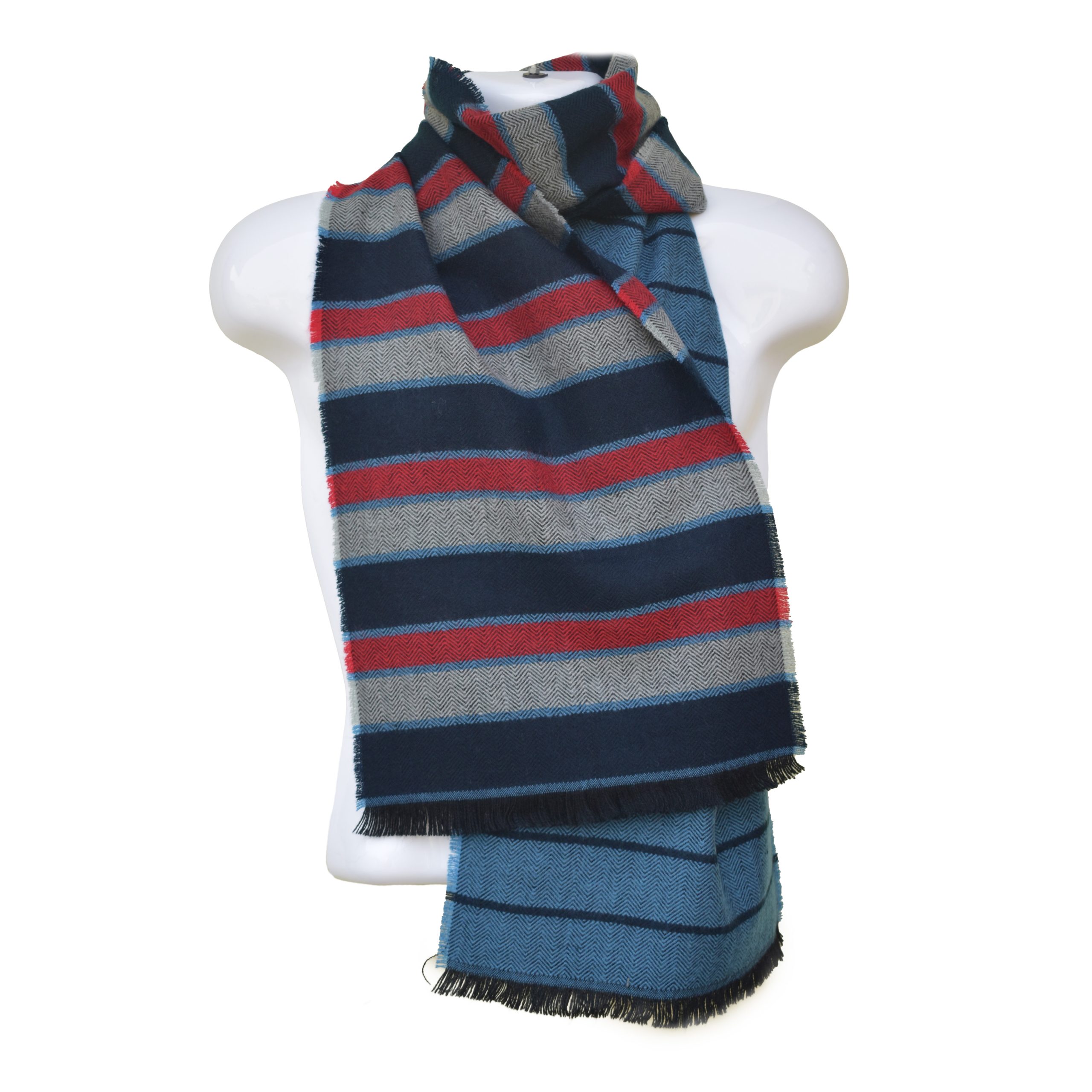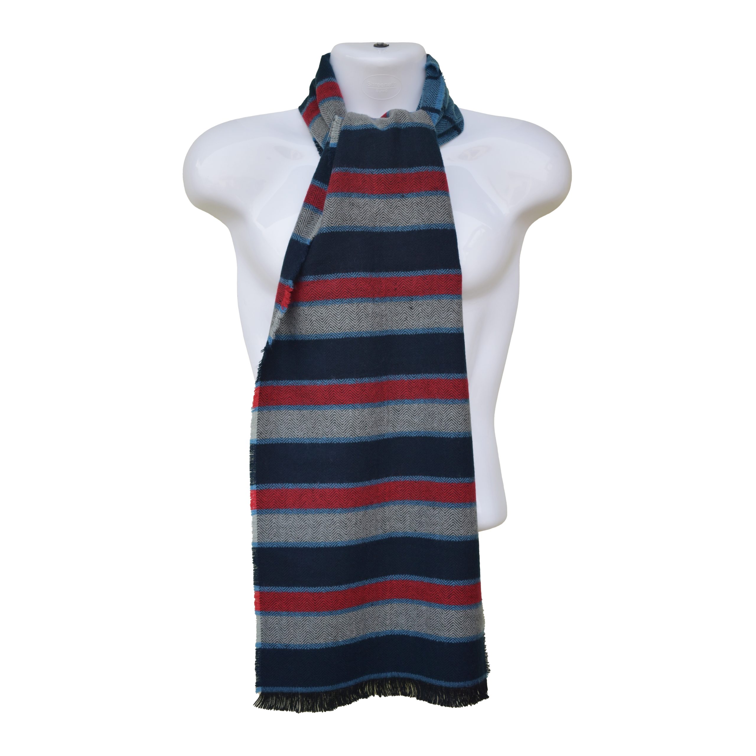 High-Quality Woolen Mens Muffler – Jacquard Style – Blue, Red & Gray